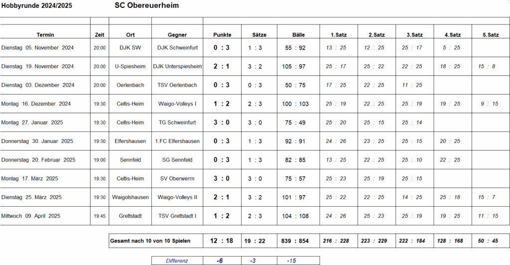 Statistik SC Obereuerheim Hobbyliga